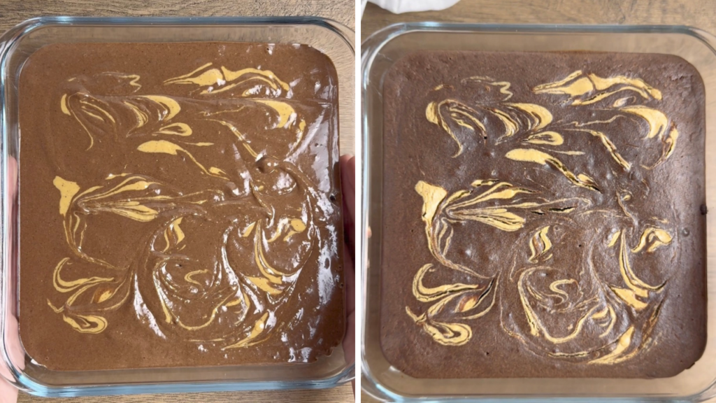 - Μεταφέρουμε το μείγμα σε ταψάκι (24×22) στρωμένο με χαρτί ψησίματος.