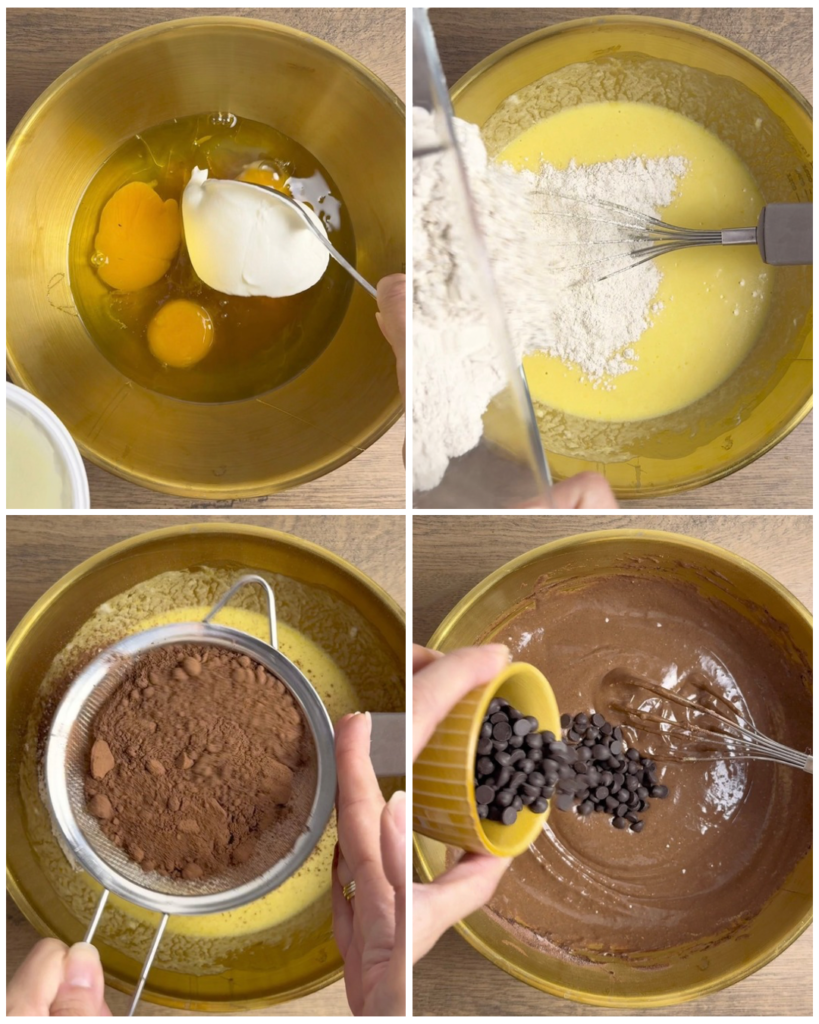 - Προσθέτουμε το αλεύρι και το κακάο.