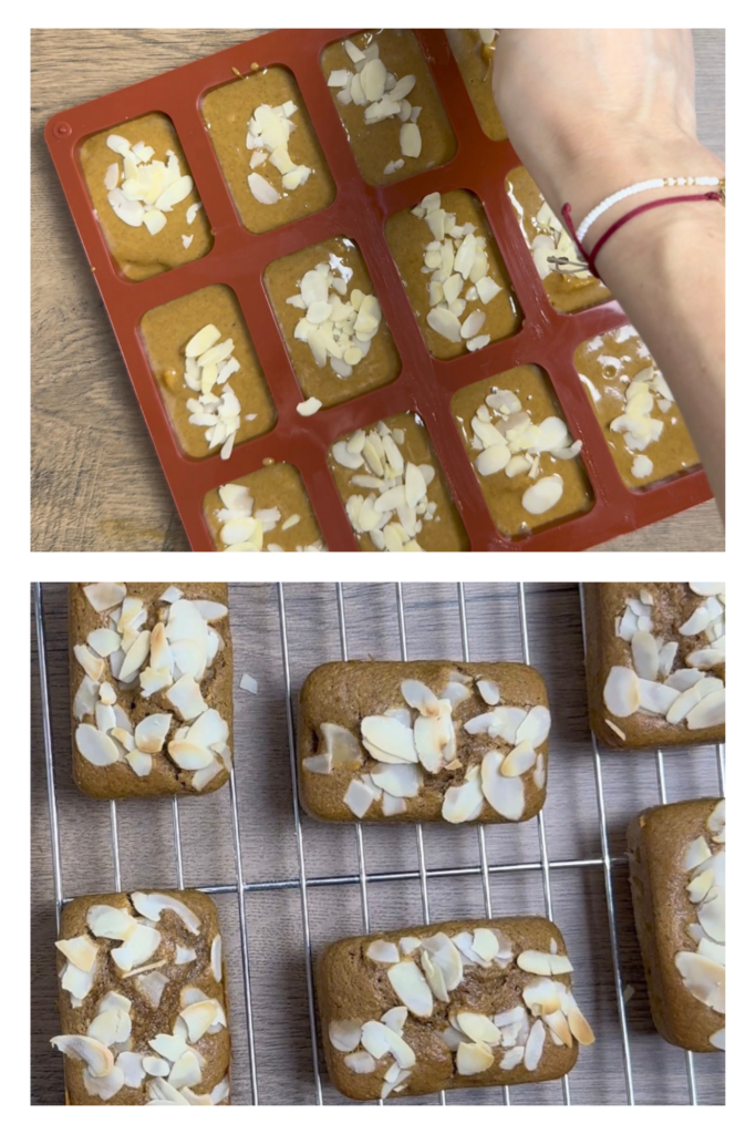 2.Ψήνεις σε προθερμασμένο φούρνο στους 160°C στον αέρα για 15–20 λεπτά, μέχρι να βγαίνει καθαρό το μαχαίρι.